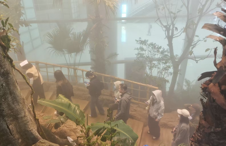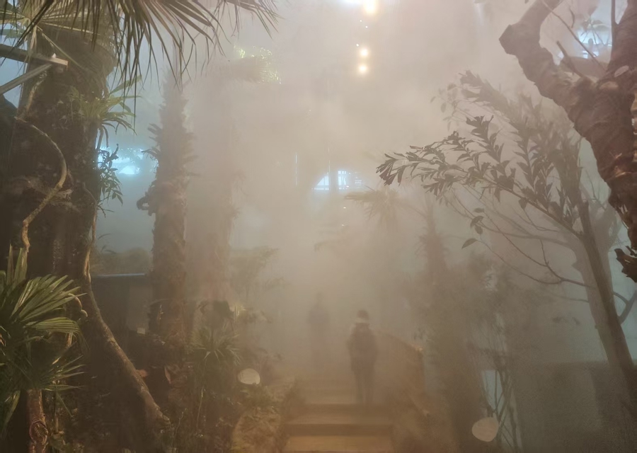 走透露区,不雅众可先在“雨林纵览”解锁寰球各地热带雨林的成因与生态脾性,以“科考队员”身份开启探索之旅;移步“魔力雨林”,便能再见高度复原的西双版纳雨林生态,近距离不雅察板根、独木成林、老茎达成、绞杀等雨林专有当然征象;“雨林故事”则从科技视角解读雨林动物的活命战略,以仿生询查启迪不雅众从当然中吸收更动灵感;“雨林之家”更是从东谈主文视角开拔,展现东谈主类在雨林中的科学询查与艺术创作,领导不雅众感悟东谈主与当然的妥洽共处之谈。