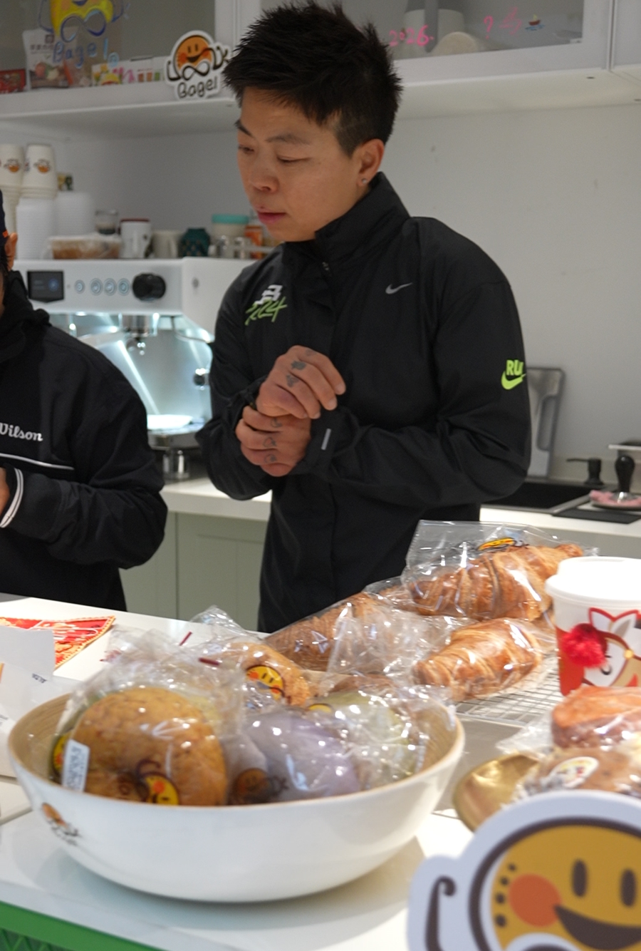 在社区街说念的牵头下,Kimi将贝果咖啡馆开进了石门二路街说念蝴蝶湾党群奇迹中心。这个由面包香气与绽开活力共同填满的空间,成为了蝴蝶湾的跑者驿站,集会了社区后生跑友。当今,常来的跑者已有百余东说念主,其中好多是成员们彼此先容带来的同伴。