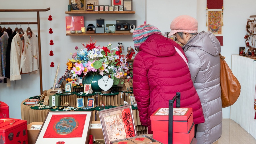 随着上海建设“入境消费第一城”及免签政策落地,这家非遗集合店迅速成为中外游客青睐的新地标。“各个国家的消费者都有,俄罗斯人、韩国人相对多一些。”白如意观察到,老外特别喜欢宋锦、香云纱和各类刺绣,鲜艳的色彩和浓郁的中国特色戳中他们的喜好。另外,来自香港和台湾的客人也不少,曾经有香港顾客在店里逛了两个多小时,几乎对每件商品都感兴趣,最后花了几千元。