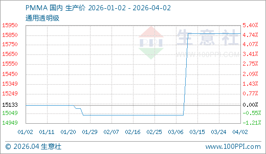 PMMA 04月02日最新价钱15866.67元/吨,最近30天飞腾5.54%。
