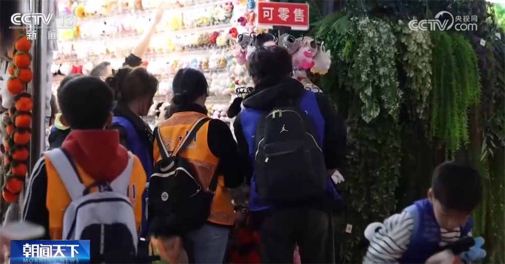 走进市集,五年齿学生闵姝扬和小伙伴坐窝被琳琅满诡计小商品引诱。经由一番比价,她出手了一款单价5元的“柿柿如意”毛绒挂件,为后续销售留足了资金。不异读五年齿的陈胤豪则更有生意意志,得知每个挂件进货价3元后,他立地和好友凑钱批量购买。