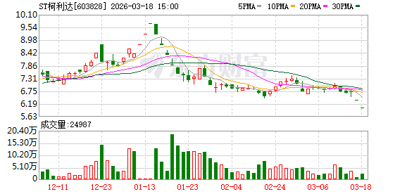 3月16日晚间,建筑遮盖公司ST柯利达霎时发布公告,上市公司及本质限度东谈主、董事长顾益明双双收到中国证监会《立案见告书》,因涉嫌信息透露积恶违章被立案访谒。次日ST柯利达开盘即封死跌停板,收报6.35元/股,跌幅4.94%;3月18日该股延续跌停态势,收盘价报6.03元,股价刷新2025年11月以来逾四个月低位。